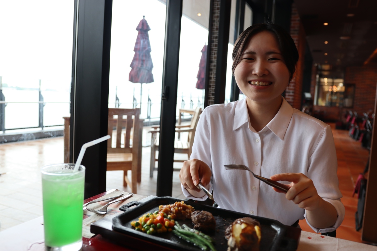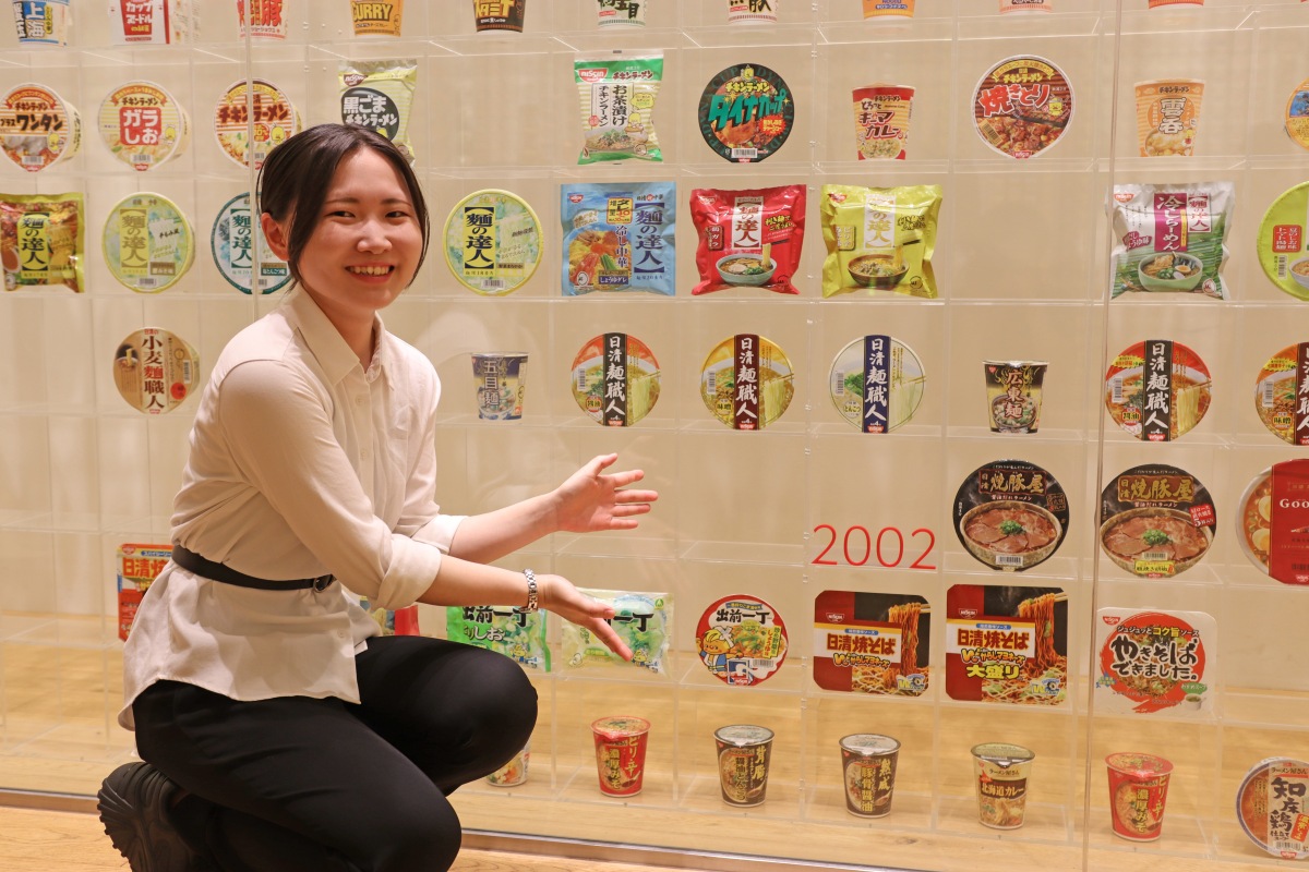 自分と同じ生まれ年のインスタントラーメンに感激するホテルスタッフ。