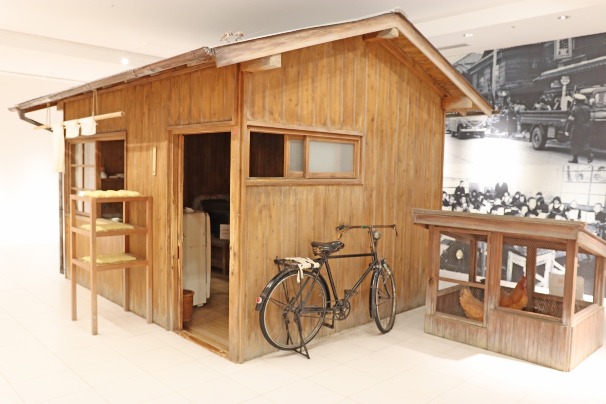 「百福の研究小屋」では、世界初のインスタントラーメン「チキンラーメン」が誕生した当時の研究小屋が忠実に再現されています。チキンスープの材料であるニワトリの小屋が設置されているところにも、リアリティが感じられます。