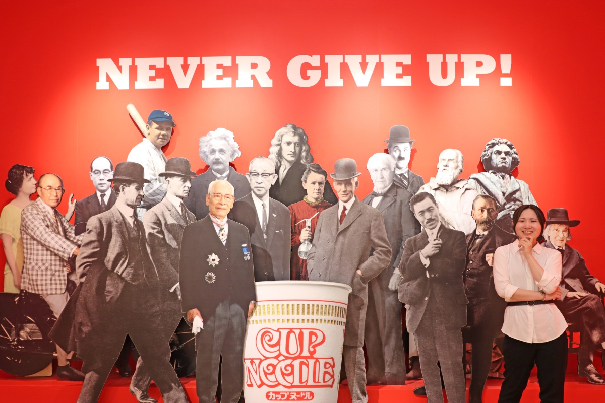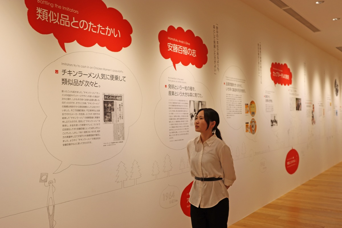 「安藤百福ヒストリー」では時代背景とともに安藤氏の生涯を紹介。加工食品でいち早く製造年月日の表示を開始したのは日清食品だったとか。「チキンラーメン」や「カップヌードル」、宇宙食ラーメン「スペース・ラム」といった画期的な商品の発明のみならず、食の安全など多角的な視点で食品業界をリードされてきた方だったのですね。