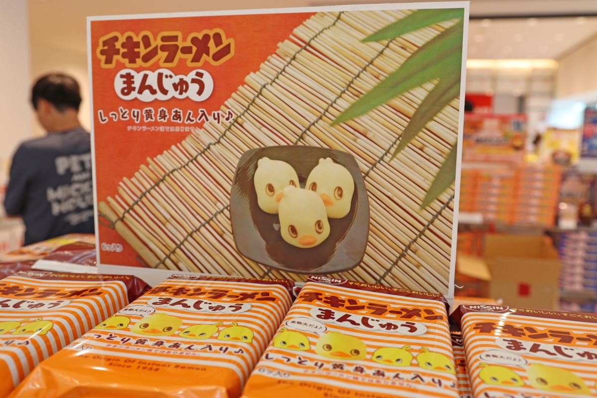 ラストは、エントランス近くにある「ミュージアムショップ」でお買い物。人気ナンバーワンの「チキンラーメンまんじゅう(1,150円)」は「チキンラーメン」味……ではなく、黄身あんの入った甘いおまんじゅうだそうです。