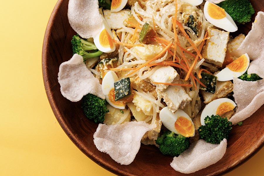 香り高いスパイスが効いた3種のカレーは、期間中レギュラーで提供する欧風ビーフカレーのほか、タイ風グリーンカレーなどが登場。ライスはターメリックライスや雑穀米を日替わりでご用意するほか、ナンもお楽しみいただけます。トッピングにはグリル野菜、フライドオニオン、付け合わせに多彩なピクルスなどをご用意。カレーに合わせて特製ラッシーも提供いたします。
