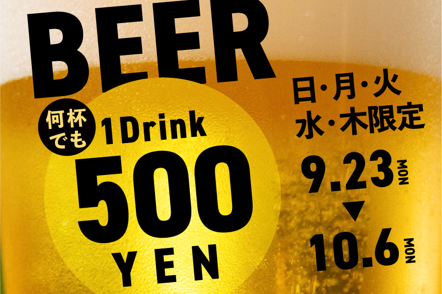 内容 | ビールのほか、ハイボール、レモンサワー、焼酎ソーダも選べます |