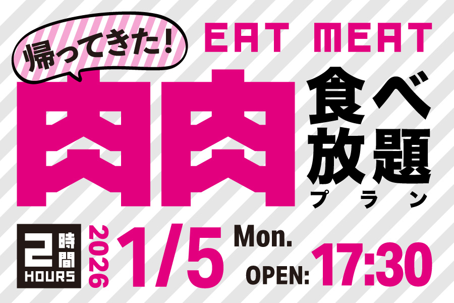 | 提供時間 | 2026年1月5日(月)限定 17:30以降のご来店(21:00料理提供終了) ※2時間制 |