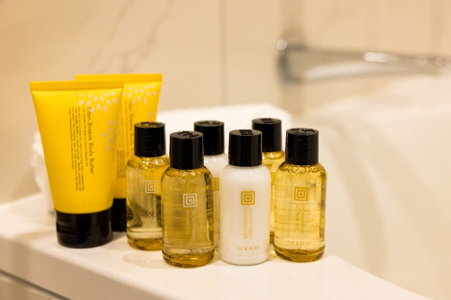 スイートルームのみにてご用意しているTHANNのアメニティセット(シャンプー・コンディショナー・シャワージェル・ボディバター)を1名様1セットご用意いたします。